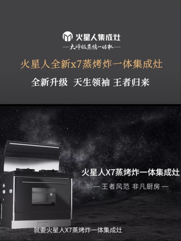 就在众多企业还在研究、发布某一款智能化集成灶单品的时候,集成灶头部企业火星人已率先打造出X8、X7、Q6、X6、等一系列智能化产品,并形成了独具优势的智能产品矩阵,从而抢占智能化高地,领衔高质量增长,探索出智能厨房的无限可能性。