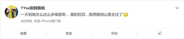 相信我们很多人在日常生活中都或多或少遇到过噪音的困扰,不同于水、大气和固体废弃物这三大公认的城市污染,噪音被归属于感觉公害,不能集中处理,很多人只能选择在微博等社交媒体上抱怨、发泄着无奈。“YYue别找我啦”说到,“一天到晚怎么这么多噪音啊… 真的扰民…我想搬到山里去住了[汗] ”,可怜,却又无可奈何。
