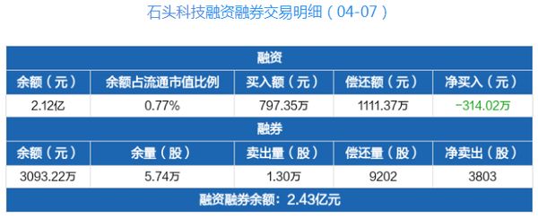 新浪家居智能家居频道讯 石头科技融资融券信息显示,2022年4月7日融资净偿还314.02万元;融资余额2.12亿元,较前一日下降1.46%