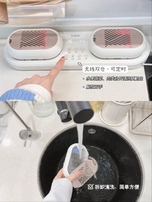 水果洗完,果香味更明显,颜色也更亮丽,感觉比手洗的好吃!农药被冲得很干净,吃起来没有怪怪的味道,一些带泥土的蔬菜也可以放进去洗,泥土甩得很彻底!它的两个清洗仓还能轻松拆卸冲洗,完全不怕交叉感染,不给任何细菌滋生留机会!