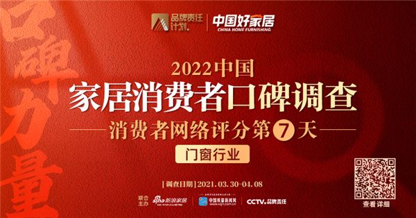 “洞悉口碑消费之下的价值驱动,用消费口碑见证品牌力量”。新浪家居携手中国质量新闻网、CCTV品牌责任于3月30日起,全面开展《中国好家居——2022中国家居消费者口碑调查》活动已于3月30日正式开启。>>点击参加2022消费者口碑调查问卷
