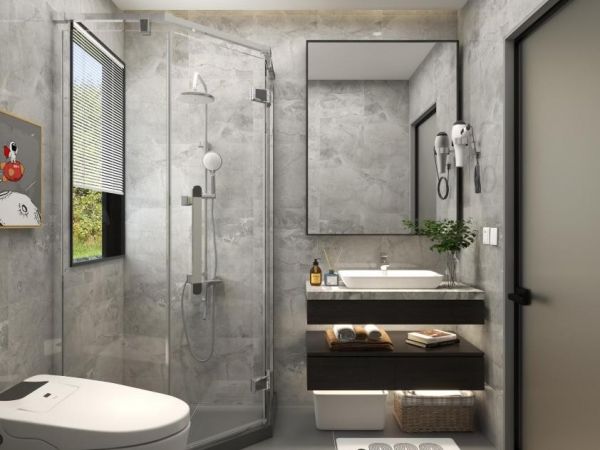 不规则形状卫生间布局可以通过定制浴室柜和淋浴间,根据不同边角尺寸的细微差距,规划出不同的功能区域,合理利用空间里所有不规则的死角,为卫生间留出更多活动的空间。