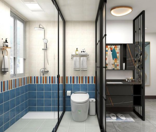 二分离最适合面积较小的户型,也是最普遍的卫生间干湿分离方式,洗漱区和马桶区是“干”区,淋浴区是“湿”区,分离开来可以同一时间满足两个人的使用需求,更方便一点。