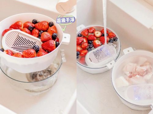 清洗果蔬、去除农残变得非常简单高效,只需要将果蔬机与食材浸泡在一起,一键启动,就能深层次清洗农残以及寄生虫卵等,且不用担心洗坏果蔬的表皮。