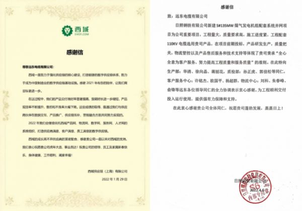 远东电缆“极致的产品与服务”为工程顺利交付投入使用提供了强有力的保障和支持,赢得了客户的认可和表扬。正如资深合伙人、远东股份监事、电缆产业首席客户服务官周丽平所说:“客户的表扬是对远东电缆产品和服务的最大认可,此起彼伏的疫情,铜价、铝价、大宗商品价格等暴涨,种种不确定因素频频出现,但在全体远东人的奋斗拼搏、攻坚克难下,依然以及时极致的产品和服务回馈客户,获得了众多客户的肯定”。