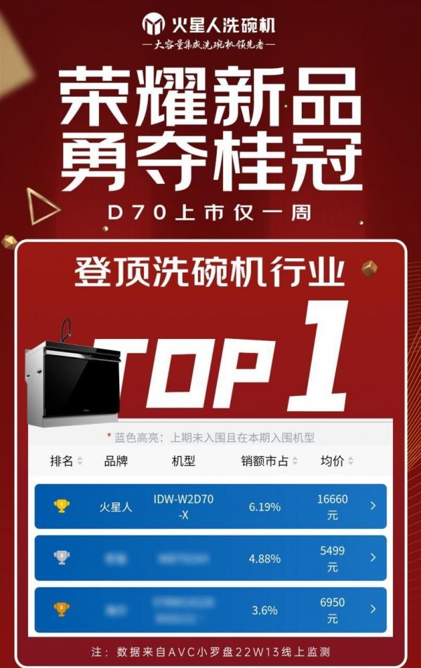 D70集成洗碗机上市一周即登顶行业单品销冠,火星人凭什么?