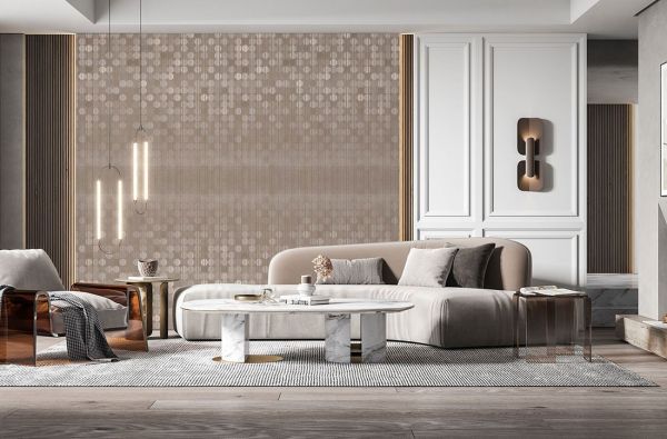 客厅是家庭居住环境中最大的生活空间,也是家庭活动和接待客人的场所。因此墙布的选择可以根据个人特色进行,比如拼色、撞色等等,但在整体上应选用明快大方的色彩,这样的选择既大方,又能显示出主人的社会地位和生活品位。