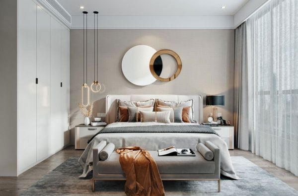 卧室主要用于睡眠的私密空间,因此在选择墙布时,大花纹墙布就不是特别适合。通常情况下,可以根据自己的喜好,选择冷色调或者暖色调的素色墙布,一般会推荐能展现优雅、精致而又不失温馨、浪漫情调的墙布,烘托出卧室的温馨,更便于休息睡眠。