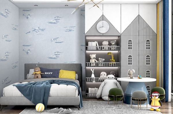 儿童房一般应选择色彩明快的墙布,饰以卡通点缀,或者直接选择,营造快乐、整洁的效果,在打造环保健康家居环境的同时,启发孩子更多的想象力。