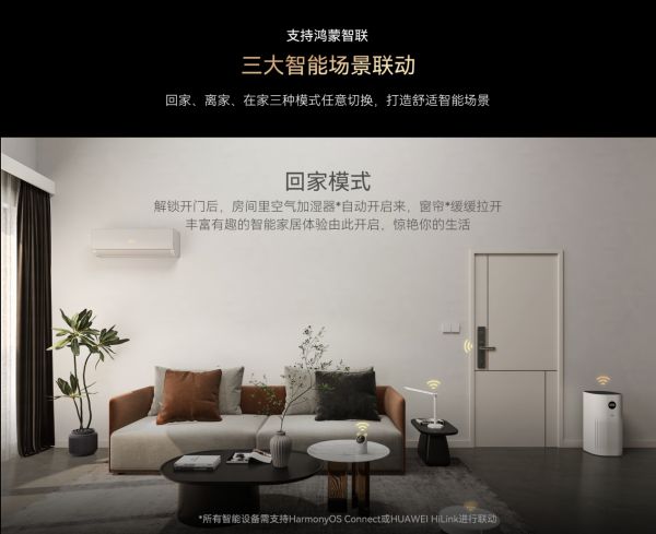 用户可以根据自己的入户习惯和喜好,设置不同的入户场景。一解锁一开门,家中的空调、电灯、空气净化器等家电设备立即开启,把回家的仪式感拉满。