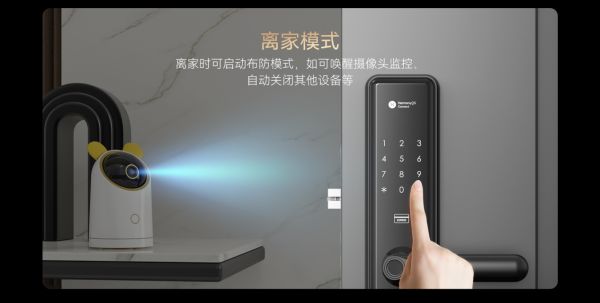出门时上提把手即可开启离家模式,家中正在运行的电器将会停止工作,家中摄像头立即开始工作,相互配合守护家的安全,非常适合健忘星人和匆忙的上班族。
