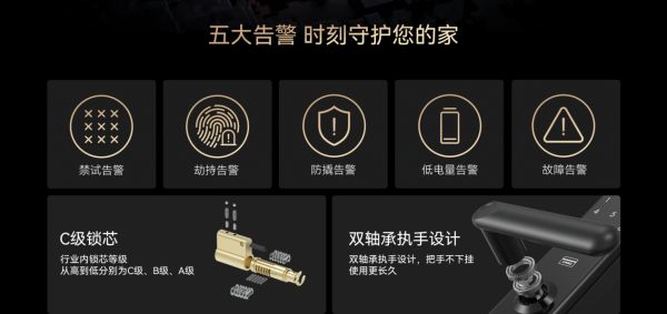 当产品遭受暴力撬动、非法试开等异常情况时将触发防撬报警装置,锁端会发出长达15秒的报警,App端也会推送提醒,无论你身处何地,都能够第一时间获悉家门情况。