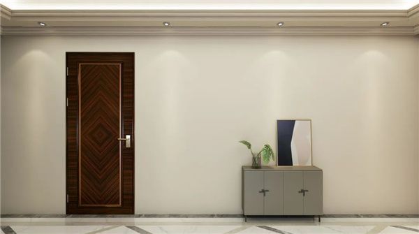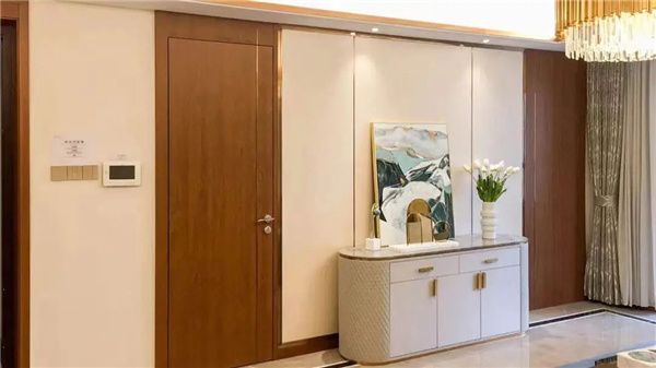当居室内的家居为轻奢风时,应选择更加凸显质感细节的木门,过于简单的木门在轻奢的装修风格中会显得格格不入,而图案过于复杂的木门则会在整体中过于抢眼,恰到好处的小细节能凸显轻奢的高级感。
