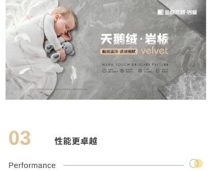 金科天鹅绒岩板采用的是超白岩板坯,融合新一代肌肤釉,使产品不仅具备瓷砖的铺贴装饰功能,还可进行桥切、深度加工制成跨界成品,抛去砖底纹或较浅的布纹,使产品可复合粘贴玻璃、木材等。
