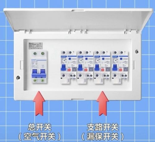 装修师傅一般都建议,以空气开关作为总开关控制总回路,漏电保护开关作为支路开关,控制插座、厨卫电器、照明等。