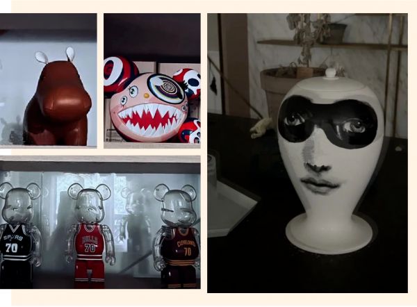 之前提供方案的时候,有了解到业主对潮奢方面比较感兴趣于是我们添加了很多潮奢方面的元素,例如村上隆的玩偶,CHANEL的抱枕,fornasetti的摆件,还有意大利cassinaLADY的椅子,以及皮革手作工艺瑞士Zuny品牌的玩偶装饰。