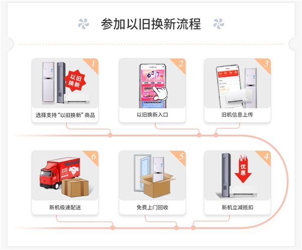 事实上,很多消费者都有“换新”的心,老旧的空调不仅外观陈旧、耗电高、噪音大,还容易滋生细菌导致患病。奈何,将旧家电卖掉再换新,需要和回收家电的商贩“博弈”价格、拆卸后再安装,预约时间和上门服务等流程繁琐,磨灭了人们换新的热情。