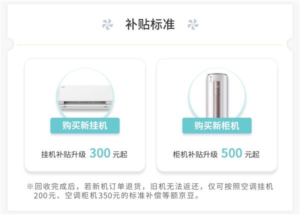 京东家电洞悉消费痛点,“以旧换新”活动再升级,挂机补贴升级300元起,柜机补贴升级500元起,满足当下市场庞大的空调换新需求,为消费者提供便捷省心的一站式换新服务。