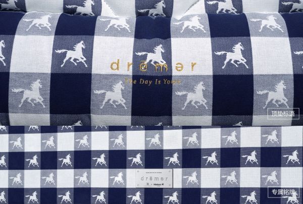 追梦床延续臻藏版生辉床优雅别致的设计风格和调性,选用同款面料,以海丝腾经典蓝白格纹为基础,格纹间配以纹花小马图饰,且有经典蓝、极致黑、页岩色和幻影灰四种颜色以供选择。顶垫尾部点缀有“drēmər,The Day Is Yours”(追梦者,每一天都属于你)的标语,底座上的镀银黄铜铭牌刻有drēmər字样及海丝腾与设计师的logo,体现了海丝腾与设计师对定制细节的极致追求。此外,追梦床还可搭配拥有独特嵌边设计的床头板,黑或蓝两种色调的定制漆木床腿,与任意卧室风格相得益彰。