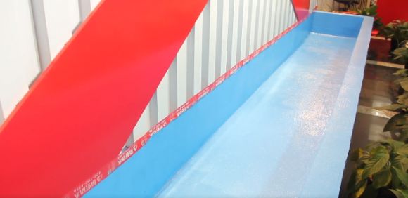 现在,HWR101高耐水小蓝桶不仅攻克了普通水性防水材料无法长期浸水的技术难题,也保障了施工师傅和用户的健康。据了解,HWR101高耐水小蓝桶解决了水性防水涂料长期浸水后易溶胀、鼓泡问题,是全球范围内首款适用于泳池、景观水池、饮用水池、消防水池等长期浸水环境的水性防水材料。