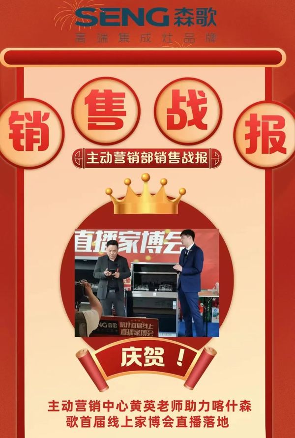 4月9日-4月10日,森歌主动营销中心黄颖老师助阵首届新疆喀什线上家博会,通过直播落地的形式进行蓄客签单,连续两天的直播,签单量和首款量取得了远超预期的胜利,更是极大地提升了森歌在当地市场的影响力。