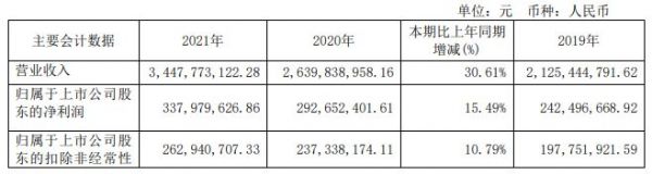 4月12日晚,金牌厨柜(SH:603180)发布2021 年年度报告。报告显示,2021年度金牌厨柜实现营业总收入约34.48亿元,同比增长30.61%;归母净利润3.38亿元,同比增加15.49%;扣非净利润2.63亿元,同比增长10.79%;经营活动产生的现金流量净额4.03亿元,同比下降40.07%;基本每股收益为2.31元。