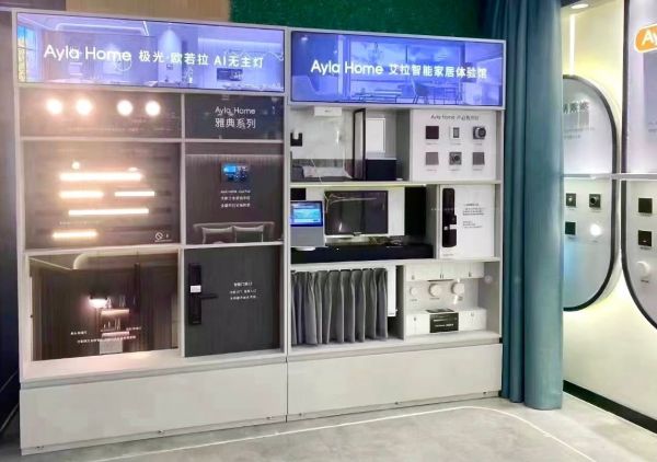 Ayla Home极光·欧若拉AI无主灯智能照明移动展墙包含了还囊括了10+款无主灯产品,外加一款集网关及边缘网关、开关、语音音箱、传感器、情景配置、背景音乐等功能为一体的超级智慧中控MaxPad和智能门锁i2。