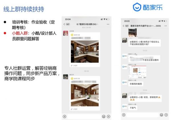 最后,整个赋能过程当然少不了全过程的答疑服务,WAZZOR瓦瑟系统门窗与酷家乐共同打造专项沟通群,群内有专人解答操作问题,新产品方案、优秀设计案例上新、线上开课等一系列动态,都能在群内及时获取。