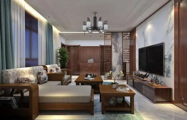在选择装修材料的时候,尽量选择那些竹子、棉麻、木材之类的原材料。设计人员选用这些天然的装修材料,可以有效满足大众精神层面的需求,还能够突出一定的文化特色。比如,装修中选用格栅红木架不仅可以起到隔断的作用,还可以用它来承载电视,真正使得装修实用性和艺术性有效结合起来,给人带来美好的感受和体验。新中式风格装修设计中可以选择那些玻璃材质、板材、石材等环保型材料,设计人员将设计重点更多地集中到舒适度层面上去,从而更好地感悟禅意,展现其柔性之美,给用户带来更为优良的体验。