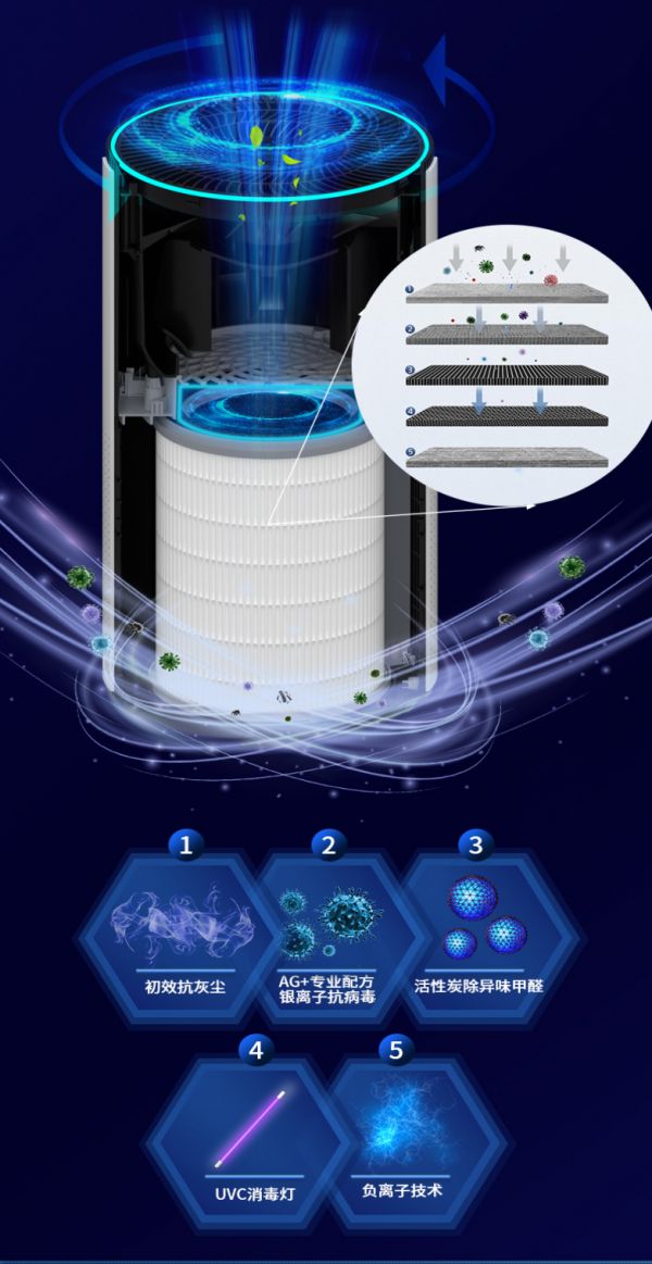 五重环抱净化深层洁净空气,舒适呼吸每一秒