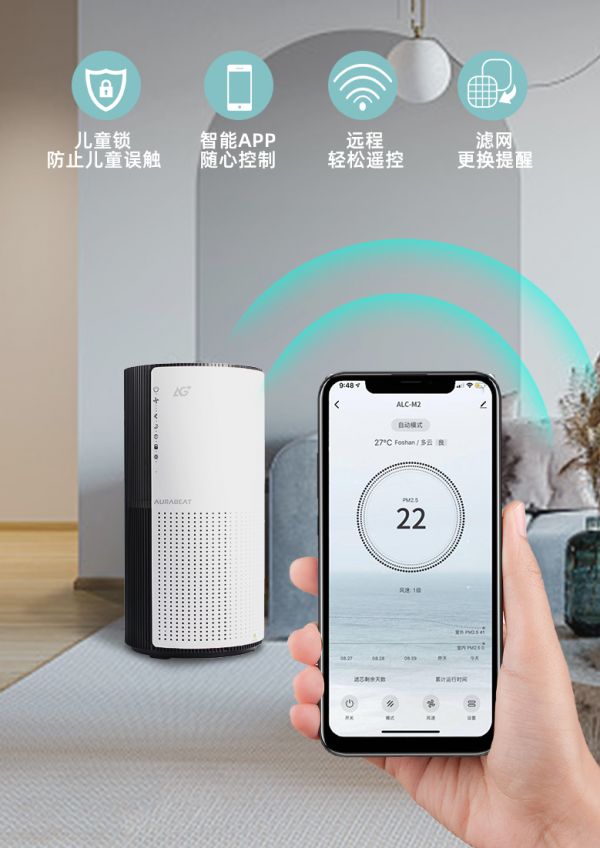 疫情时代下新冠病毒肆虐猖獗,为保空气质量健康,M2空气净化器搭载品牌专研的AG+专业配方银离子抗病毒技术,能够做到10分钟急速消杀新冠病毒。而对于家居环境存在的灰尘、甲醛、毛发、病毒等等常见空气污染问题,AURABEAT爱乐彼M2空气净化器都可以对症下药。