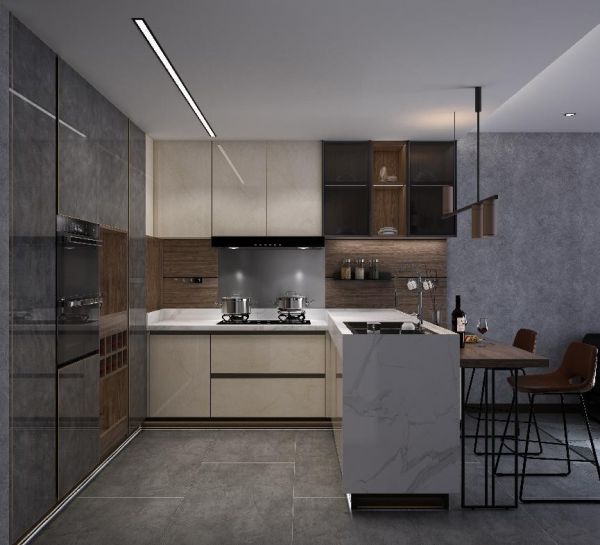 如果水槽、备餐台、灶台都保持同一个高度,可能会出现洗菜时因为台面矮了长时间弯腰,或者炒菜时因为台面高了一直抬着胳膊,长期下去腰酸背痛,最好让两者高度差在10cm左右(灶台更低),才能避免手、腰不适的问题。