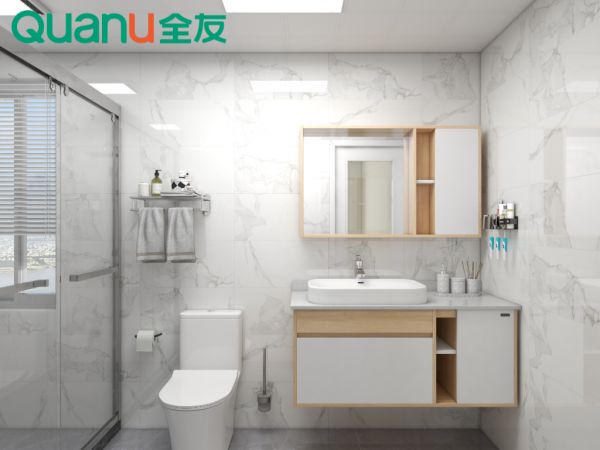 悬空浴室柜相较于传统的落地浴室柜,不仅颜值高、体积小,还能避免卫生死角,美观和实用并存。