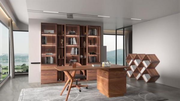 有了完美的家具布置,对于爱书之人来说,拥有一间心仪的书房更是可遇不可求的事情。脱胎于木材的纯木书柜承托着取之于树的书本,仿若回到了它本来的去处,而百强始终如一的对完美细节的把控,更是对“珍藏”一词的诠释。浅薄的圆弧流线形凹型精致线贯穿整个柜体,“天圆地方”是它的一大特色;太空金属门框与钢化玻璃为高大的书柜平添了一份神秘色彩,科技感立显;柜内隐藏灯带的设计带来了朦胧的美感,多种材质混搭,将创意美学无声地融入产品,使整个书柜优雅又富有气质。