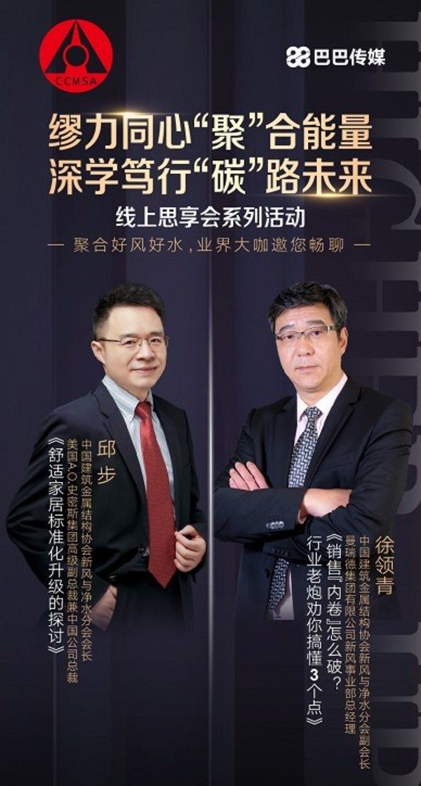 鉴于当下疫情的发展,多位行业专家、企业高管首次聚首云端,带来思想的碰撞与激荡。其中,中国建筑金属结构协会新风与净水分会会长、A.O.史密斯中国公司总裁邱步,新风与净水分会副会长、曼瑞德集团有限公司新风产业部总经理徐领青更是"领衔"登场,为全网观众带来了精彩纷呈的主题演讲。