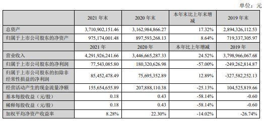 4月15日,东易日盛(002713.SZ)发布2021年业绩报告。公告显示,2021年东易日盛实现营业收入42.92亿元,同比增长24.52%;归属于上市公司股东的净利润7754.31万元,同比下降57%;基本每股收益为0.18元/股,同比下降58.14% 。