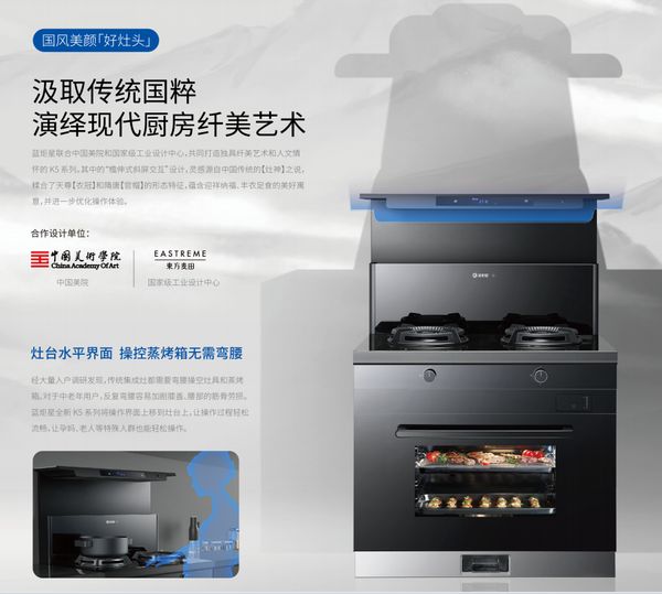 新品K5S麦饭石蒸烤炸集成灶,就在这样的背景下横空出世。为了拉升颜值,形成独有的产品形象识别。蓝炬星联合中国美术学院和国家著名工业设计中心东方麦田共同打造,期间又经历了内部为期数月的试用、反馈、优化、测试,甚至喊来了公司众多年轻员工一起当起了“评委”,亲提建议。