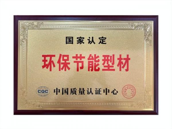 2019年,通过中国质量认证中心《环保节能型材》认证;