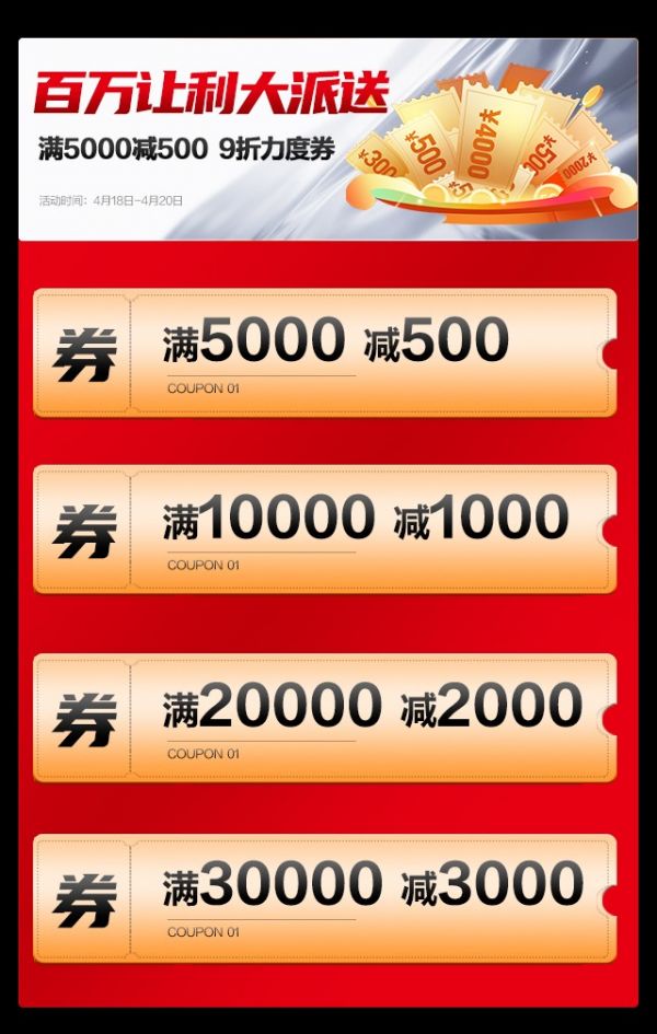 另外还设有诸如满5000减500等跨店满减活动,9折力度券领到手软,预算有限的采购们就不要轻易错过这波优惠福利了。