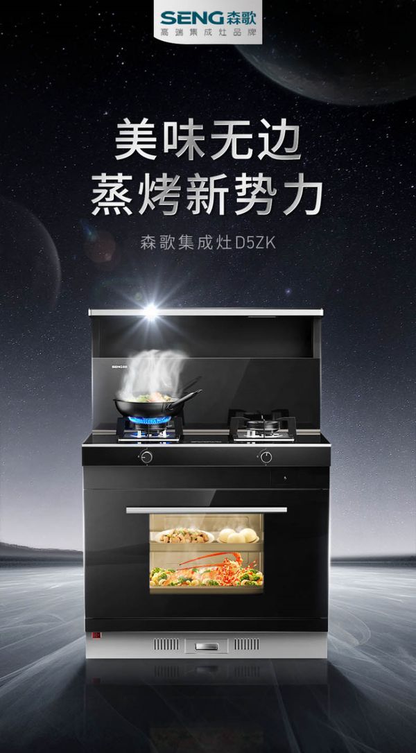 不得不提的是,415京东嗨购节当晚,森歌新品D5ZK的首发也颇为吸引眼球。作为集成设计、一机多能的典范,它以一敌十,能蒸善烤,更有十大智能模式帮助厨房新手秒变大厨!森歌始终在利用科技的创领,来践行“理想厨房生活“的用户承诺,让人们未来的生活变得越来越智能、高端和人性化。