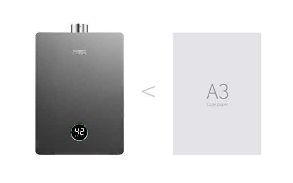 万家乐A3小体积燃气热水器是历时五年的研制打磨,于2021年成功上市的一款创新型产品。其设计采用了核心组件集成化的小体积设计理念,在实现零冷水、能效利用率大幅突破的同时,秉承了机身由内而外360度无螺钉连接的极简设计风格。在家居应用场景中,A3小体积燃气热水器机身平面尺寸仅相当于一张A3打印纸,能最大程度释放用户对空间使用的想象力。此外,创新全铝合金的材料跨界应用让其在颜值和耐用性方面更具竞争力。