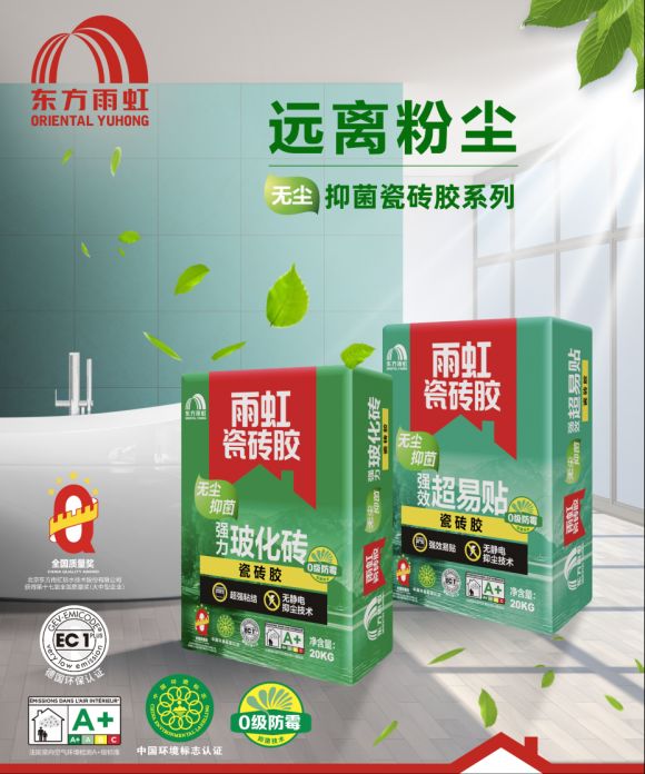 雨虹无尘瓷砖胶具备防霉抗菌性能,抑制黑曲霉、黄曲霉、球毛壳霉、宛氏拟青霉等8种霉菌滋生,同时,其粘接强度高,能够有效减少空鼓、掉砖的风险,全方位守护家庭安居环境。