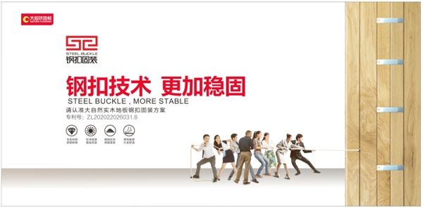 其中,值得关注的是大自然实木地板钢扣固装方案,它是目前行业崭新的地板铺装方案,拥有国家实用新型专利,主要利用韧力十足的合金材质钢扣,将每块地板稳固扣合,拼接成整体,借助合金材质钢扣本身弧形结构的预应力,抑制木材受铺装环境影响造成的收缩膨胀,使地板拼接始终保持在一个稳定的关联状态,科学地控制地板的干缩湿胀,大大减少地板起拱和起缝等问题,确保实木地板的装饰效果和舒适脚感。