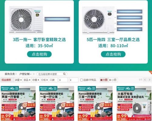 除了层高和户型,在选择时还要参考面积和具体户型情况匹配合适的制冷量,但对于普通消费者就有点复杂了。当然也有偷懒的方法,比如很多中央空调品牌会提供定制化的中央空调设计方案,像海信中央空调,在他们的天猫官旗上,就能看到80~110㎡的三室一厅、两室一厅、甚至一室一厅等不同方案,对于不太了解中央空调的人来说,这种选购方式既省事又划算。