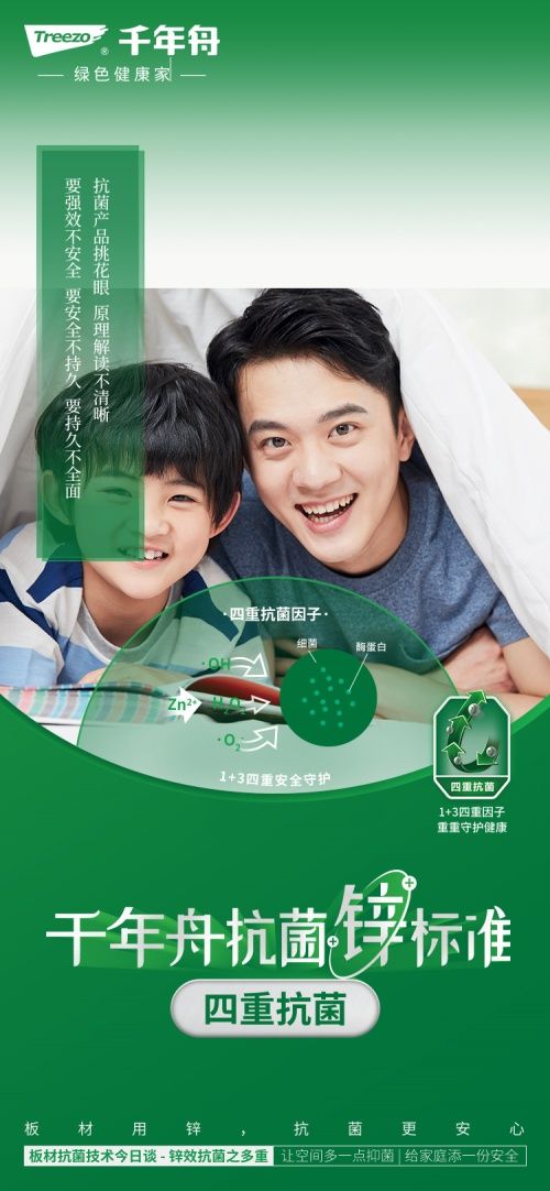 随着经济发展和科研技术的不断迭代升级,人们的健康素养得以快速提升,有氧运动成为时尚,养生成为社交话题,空气质量与消杀成为日常关注焦点。也随之对抗菌产品提出了更多的要求,在这样的背景下,千年舟家业首推的锌效抗菌技术,从高效、安全、长效、多重四个维度诠释了全面四边形抗菌的锌标准。
