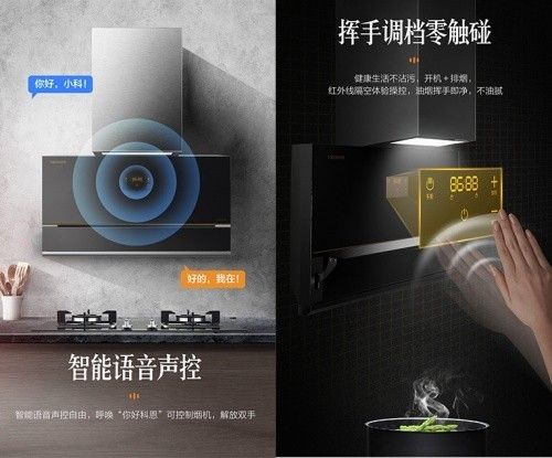 目前大多数油烟机都需要进行手动按键控制,有时候会出现炒菜到一半发现油烟机没开,手上油污太多按键不灵敏等情况,科恩新一代大吸力烟机7350最大的亮点在于拥有智能语音控制与体感操控,健康生活不玷污,开机+排烟控制,隔空体验操控,解放双手不油腻。