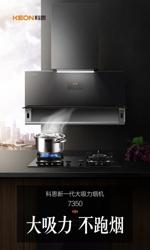 告别油腻,远离油烟,享受健康厨房!科恩新一代大吸力烟机7350满足多种烹饪需求,让厨房不再有油烟!