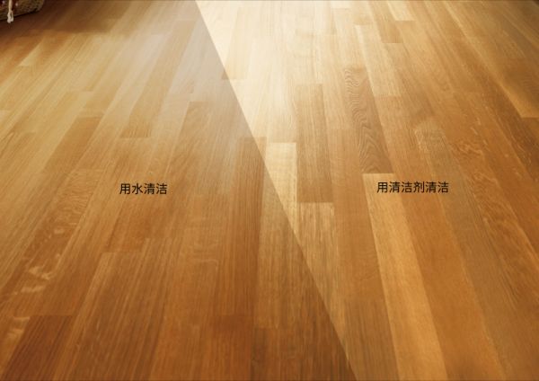 首先,水无法有效清洁干净地板。其次,在拖地时,水会渗入接缝处使地板弯曲变形,留下水迹残痕形成水锈。并且水是酸性的,长期使用会使地板变黄发暗,失去原有的光泽。不妨看看现在家里的地板,与刚铺装时相比是不是变得暗沉?这不是岁月留下的痕迹,是长期用水清洁的结果。