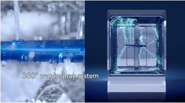 Innowash洗碗机上碗篮导轨使用3节滚珠导轨,在用户推拉过程顺畅,有效避免装满餐具后的卡顿现象。令人眼前一亮的是,产品搭载全球首创二维喷射技术,通过主喷臂公转带动副喷臂自转,实现360°立体喷射,全方位深入餐具缝隙,覆盖面积、清洗速度和效果得到显著提升,全方位清洁餐具,使之焕然一新。