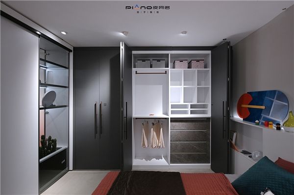 对于潮酷时尚达人一族而言,买买买是生活的必需品,好看的、喜欢的、感兴趣的衣服、首饰、鞋包、帽子等等都要收入囊中,而颜值和实用兼具的衣帽间才能符合心意。高端全屋定制皮阿诺开放型++半开放型+封闭型的组合衣帽间,可以轻松实现屋主不同的需求和使用习惯,让衣帽间也可以变得实用而不失仪式感。